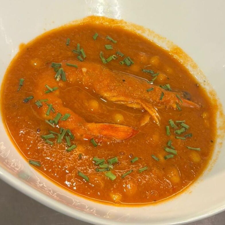 Comimos jamón Joselito, mojama, anchoas, papas aliñadas con ventresca, carabineros y almejas a la jerezana.